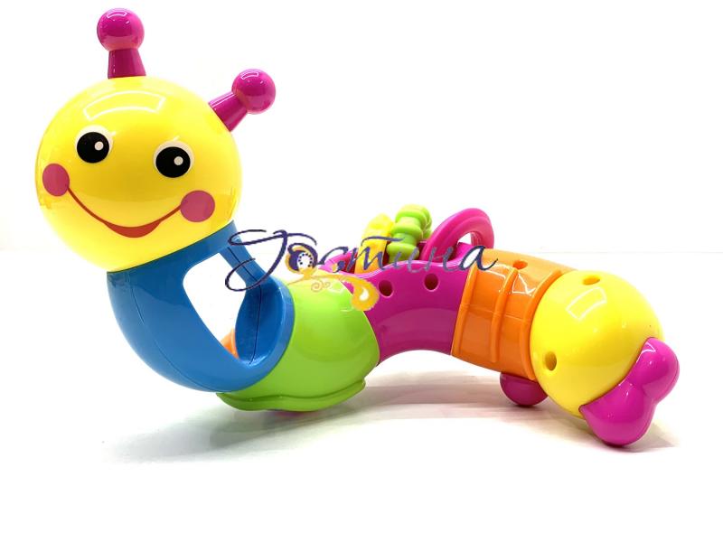 Іграшка Забавна гусениця розвиває пам'ять, кмітливість, тактильні відчуття малюка. Особливості:безпечне дзеркало;тріскачка;рухливі деталі;брязкальце.Розмір упаковки: 18х18х6 см.