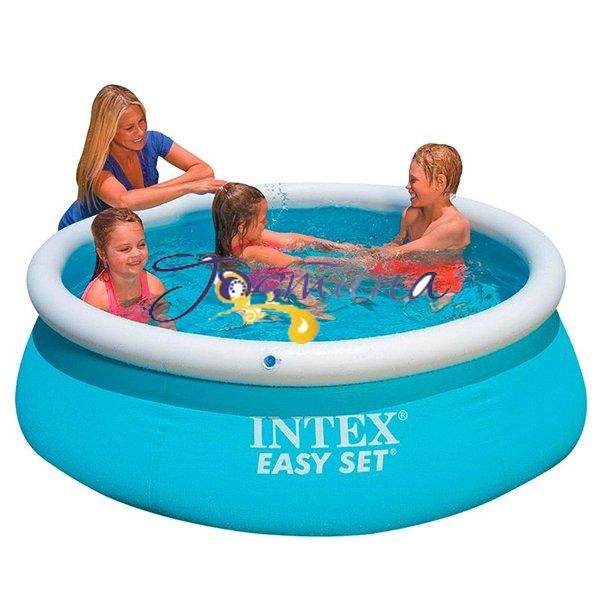 Компактний надувний басейн Intex Easy Set-28101, можна зберігати як на дачі, Так і в квартирі. За рахунок невеликої ваги і розміру він не займе багато місця навіть у невеликій квартирі або машині. Ну, а в жарку задушливу погоду його легко встановити на вашому дачній або садовій ділянці. Приємний блакитний колір басейну доповнить будь-який інтер'єр присадибної ділянки. За рахунок достатньої щільності надувний басейн Easy Set стійкий до розтягування і стирання. Особливо сподобається плескатися в басейні в спекотну погоду дітям, а за рахунок м'яких зручних бортиків і не великий глибині, можна не турбується про їх безпеку.
