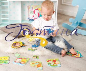 Деталі пазла – м’які та об’ємні. Малюкові буде зручно й легко поєднувати елементи. Яскраво кольорові малюнки одразу привертають увагу дітлахів.