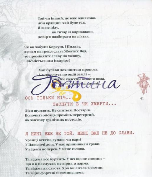 Велич історичного призначення та драма самотньої людської душі – ці два виміри нерозривно пов’язані у творі. Драма поразки стає філософією відродження, катарсисом, повстанням з руїни людини і народу. Перемога над поразкою — основний філософський і психологічний код цього твору. Для широкого читацького загалу.