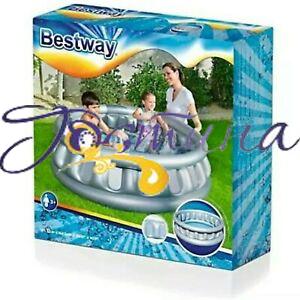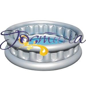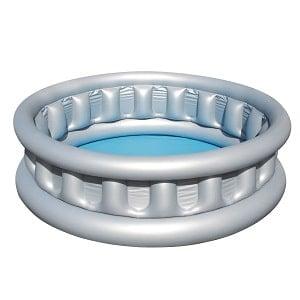 Надувний басейн виконаний з пружного вінілового матеріалу. Дизайн басейну у вигляді літаючої тарілки захопить на свій борт будь-якої дитини. Цей басейн хороший варіант для дачі, будинки або виїздів на море, він дуже компактний в складеному вигляді. Борти басейну підтримуються надувним кільцем.