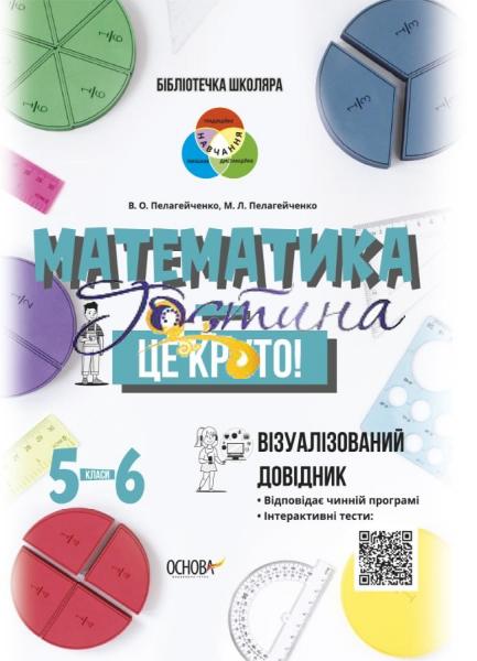 «Круто!» — саме така реакція буде супроводжувати дитину сторінками цього візуалізованого посібника з математики. Ненудна теорія, цікаві приклади з життя, алгоритми розв’язування типових завдань, завдання для відпрацювання теми, інтерактивні тести та багато-багато цікавинок! Посібник складено за чинною програмою з математики для 5-6 класів (усі 111 тем!). Використовувати його можна для самостійного навчання вдома, змішаного або дистанційного навчання в школі, а також як додатковий пізнавальний примірник для всіх розумників та розумничок, які цікавляться математикою. Матеріали дібрано за 55 темами для 5 класу та 56 темами для 6 класу. Завдання цікаві, візуалізовані, дібрані для того, щоб розвивати предметні та ключові компетентності учнів. За QR кодом учні можуть пройти тести та перевірити свої знання за темою.