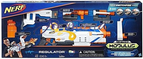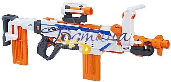 Бластер Modulus Regulator - це автоматичний бластер, що поставляється з 2 обоймами на 12 стріл, прикладом,