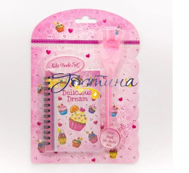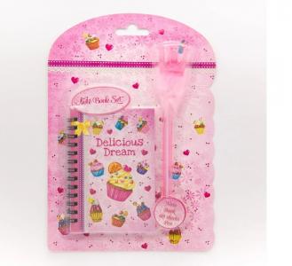 Блокнот дитячий "Смачні тістечка" на планшеті з ручкою-короною. 120 x 80 мм, 60 аркушів, 70 м, лінія. Кольоровий внутрішній блок. Закривається на замок. Яскрава оригінальна обкладинка з твердого високоякісного картону з блискітками. Відмінно підійде в якості дитячого «секретника».