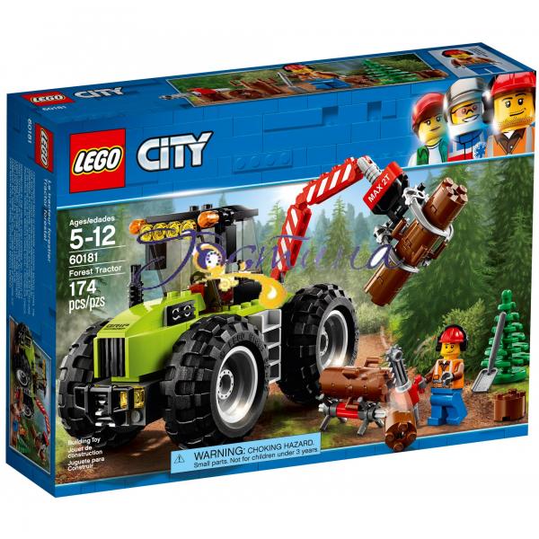Класичний конструктор LEGO City Лесоповальній трактор (60181) познайомить дітлахів з особливостями професії лісоруба. Представлена модель виконана з максимальною реалістичністю на повсякденне життя сильних чоловіків і передбачається до застосування хлопцями старше п'ятирічного віку. Для виготовлення цікавого набору використовувався якісний, перевірений і безпечний пластик, а складається він з 174 різноманітних деталей. Зібравши всі деталі, хлопці зможуть зануритися в цікавий і захоплюючий світ роботи в лісопосадках, де необхідно розчищати ліс від сухих і хворих на туберкульоз дерев і давати життя новим з насіння шишечок. Конструктор LEGO City Лесоповальній трактор (60181) сприятливо впливає на розвиток у дітей уяви, фантазії, логічного мислення, дрібної моторики і концентрації уваги.