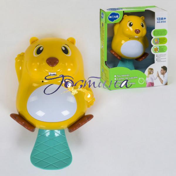 'Бобер' для купання 8102 Hola для ванної виготовлений з нетоксичного АВС-пластика. Краї досить гладкі, щоб діти могли гратися. Іграшковий 'Бобер' корисний для розвитку логічного мислення і моторики.Функції:- плаваюча тваринка зрухомим хвостовим плавцем. Може плавати автоматично, коли він потрапить у воду. - 100% безпечний для дітей Працює від 3-х батарейок 1.5V ААА (не входять в комплект). 3 різних миготливих світла можуть легко привернути увагу дітейКоли 'Бобер' знаходиться у воді, він автоматично розпорошує воду з рота