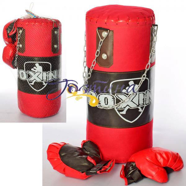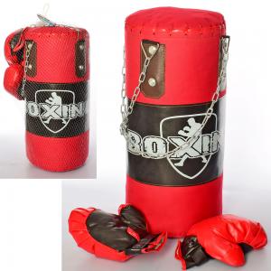 Боксерський набір MR 0174 груша 52-24см, наповнювач-текстиль, рукавички 2шт, кріплення-метал, в сітці. Розмір - 60-27-24см, Матеріал - комбінований матеріал, Тип упаковки - сітка.
