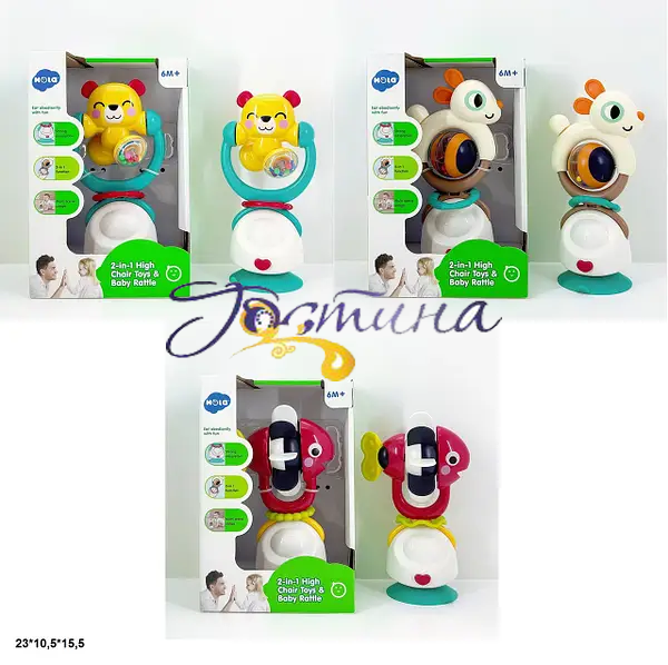Брязкальце E7975A/B/C (18шт/2) тваринки з прорізувачем на присосці 3 види у коробці 23*10,5*15,5 см