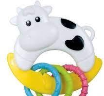 Брязкальце Корівка / жаба розроблена для самих маленьких дітей. Різноманітність форм і кольору брязкальця сприяють психомоторному розвитку. Візьміть з собою дитину в світ звуку, руху і фарб. Виготовлений з міцного, безпечного матеріалу, не має гострих країв.