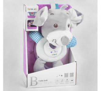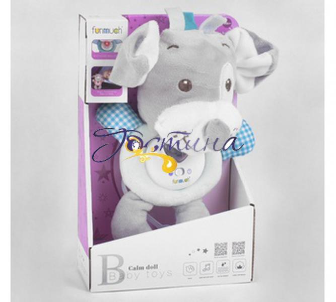 М'яке музичне брязкальце представлене у вигляді собачки і спрямоване на розвиток і концентрацію уваги, розвиток тактильних відчуттів і колірного сприйняття. Брязкальце приємне на дотик і виготовлене з декількох видів текстильного матеріалу. По центру розташовується пластиковий механізм. Особливості гри: - підсвічування сердечка - звуки - спокійні колискові мелодії - брязкальце можна прати (механізм знімний) Працює брязкальце від 2-х батарейок AG13 (входять в комплект). Вік: 0 + місяців.