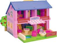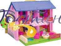 Будиночок для ляльок — мрія будь-якої дівчинки. Під час навчання облаштовувати будиночок дівчинка буде розвивати просторове мислення й задатки майбутньої господині. Ця розвивальна іграшка стимулює фантазію, інтелект і логіку. Барвисті кольори й безліч елементів принесуть дівчинці величезну радість від гри. Двоповерховий ляльковий будиночок містить комплект меблів з 14 елементів, за допомогою яких дівчинка зможе самостійно облаштувати всі кімнати. На першому поверсі розташований зал і тераса з басейном, а на другому поверсі — спальня і ванна кімната. Для лялькового будиночка підходять ляльки невеликого розміру — заввишки до 7 см і завширшки до 3 см. До набору також входить посуд — глечик, цукорниця, кухлі, чашки, тарілки та столові прилади. Завдяки ручці, розташованій на даху будиночка для ляльок, його можна легко перенести в інше місце. Всі елементи набору виготовлені з харчового, безпечного та довговічного пластику.