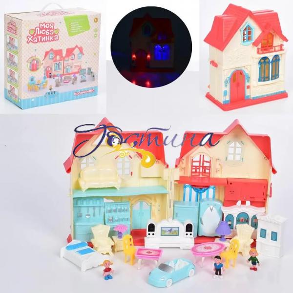 Будиночок WD-932A автомобіль, фігурка 3 шт., меблі, муз., світло, бат., кор., 33-32-15 см.