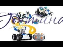 Електромеханічний радіокерований конструктор 2 в 1. Робот і бурова машина. У наборі 606 деталей, один мотор, блок управління, гумові колеса, пульт радіоуправління, вбудований акумулятор. У комплекті лежить детальна ілюстрована інструкція по збірці. Аналог Lego Technic. Рекомендовано для дітей від 6 років. Роботу можна рухати руки, пальці, голову, рот. У бурової машини обертається бур.