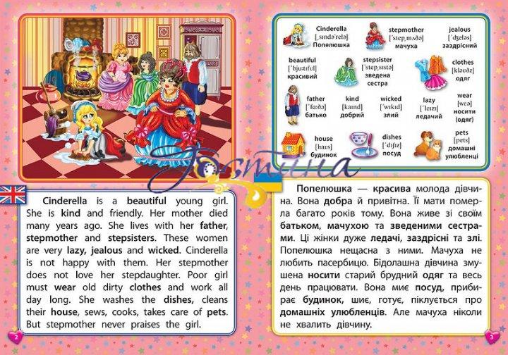 Кожна книга серії містить україномовний та англомовний варіант казки, відомої кожному з нас з раннього дитинства, комплексний і тематичний словники, а також цікаві завдання на відпрацювання прочитаного, відповіді на які слід шукати серед наклейок. Видання дозволить дитині поповнити словниковий запас, повправлятися в граматиці і правописі англійської мови, а також весело і корисно провести час!