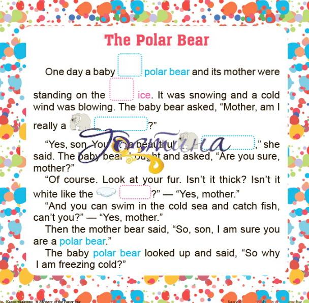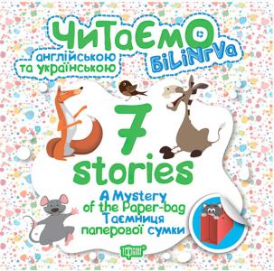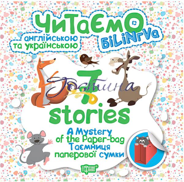 У книгах серії "Читаємо англійською та українською. 7 stories. Таємниця паперової сумки" 7 веселих історій. Зліва - англійською мовою, праворуч - на українському. В англійському тексті є яскраві наклейки для тренування найпоширеніших слів. Спочатку дитина наклеює малюнок поруч зі словом, яке виділено певним кольором в обох текстах, а коли слово зустрічається вдруге, читач наклеює слово поруч з малюнком. На сторінці наклейками це слово виділено таким же кольором.