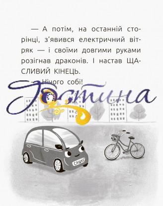 Тільки електричні вітряки можуть перемогти дракона. Тож електромобіль Сашко та велосипединка Юля вирушають на пошуки цих дивовижних створінь. Сповнене фантазії та гумору оповідання Олесі Марчич знайомить юних читачів із сучасними екотехнологіями та запрошує подивитися на добре відомі речі по-новому. Серію 'Читальня' адресовано учням початкової школи для самостійного читання чи опрацювання на уроках. 'Читальня' має три рівні складності тексту. Серію розробили та апробували методисти НЦ 'Мала академія наук України', експерти з дитячого читання.