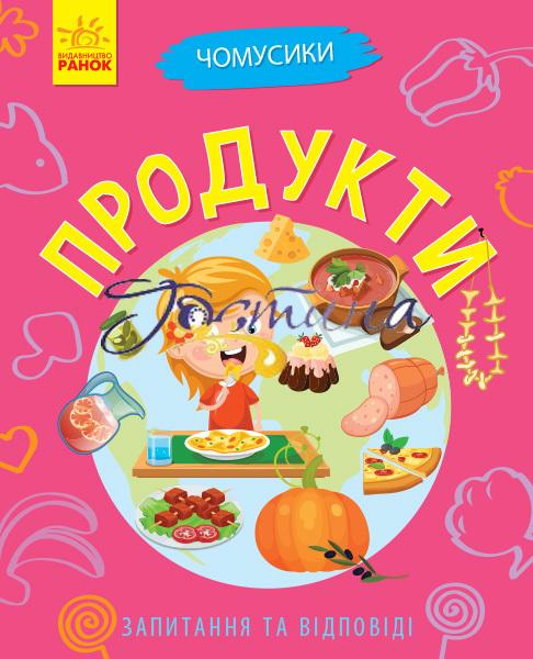 Книга «Продукти» допоможе батькам знайти відповіді на несподівані запитання маленьких чомусиків. Чому свербить укус комара. Як мухи ходять стелею? Для чого жукам роги? Видання призначене для дітей дошкільного та молодшого шкільного віку.