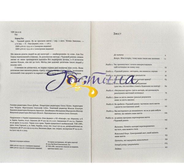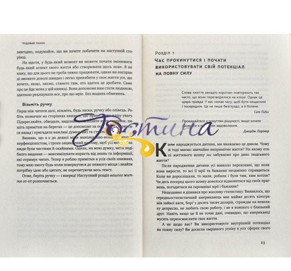 Американський бізнесмен та автор книги «Чудовий ранок. Не дуже очевидний секрет, як гарантовано змінити своє життя… (до 8-ї години ранку)» Халь Ельрод на власному досвіді стверджує, що початок дня визначає те, яким буде цілий день. Користуючись його порадами, Ви можете змінити час та «стиль» пробудження, й разом з цим набути більше здоров’я, краси, життєвої енергії, корисних звичок та задоволення від праці.