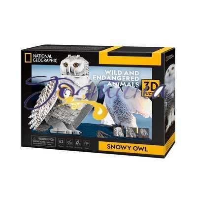 Розвиваючий 3D пазл для дітей та дорослих CubicFun у вигляді Сніжної сови з підставкою-декором.