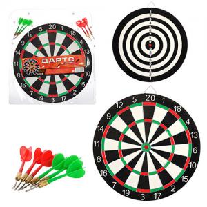 Дартс MS 0096 - гра, яка захопить як дитину, так і дорослу. Ця гра може послужити звичайним придбанням для розваг або хорошим подарунком. Для дітей ця гра підходить віком від п'яти років та вище. Дартс MS 0097 чудово підійде як для любителів, так і для новачків. Завдяки цій грі Ви зможете чудово провести час вдома, в офісі в обідню перерву та брати її на відпочинок. Дитині ж буде цікаво спробувати свої сили у цій грі, до того ж вона розвиває влучність, концентрацію уваги та спритність рук. Дартс MS 0096 виконаний у класичній стилістиці. Його легко розмістити у зручному для Вас місці. Мішень має дві ігрові моделі для різних варіантів гри. Сама основа виконана з рослинного волокна, завдяки чому дротики добре триматися при кидку. Самі дротики представлені у двох кольорах, з алюмінієвим наконечником. Розмір мішені складає 36,5 див. У комплекті шість дротиків. Упакована в слюді: 40,5х44х1,5 див.