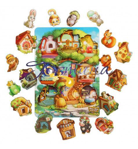 Дерев'яний двошаровий вкладиш стане чудовим подарунком для дитини. У наборі 18 дерев'яних вкладишів – 9 фігурок тварин та 9 будиночків для них. Головна мета для малюка - по картинці підібрати кожній тварині його будинок. За допомогою такої гри дитину можна знайомити із тваринами різних видів, розвивати дрібну моторику рук, логіку. Розмір – 32х23 см.