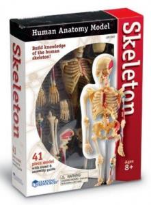 Невеликий макет, висотою 23 см, реалістично опрацьований і поставляється з підставкою для демонстрації. Завдяки хорошій деталізації, хлопці легко зможуть зіставити деталі для зборки, які дуже просто і надійно кріпляться друг до друга за допомогою шарнірів. Для спрощення задачі складання, можна використовувати ілюстровану інструкцію, яка так само містить деякі цікаві факти про особливості анатомії людини. Набір складається з 41 пластикового елемента, з яких можна зібрати черепа, грудну клітку, плечові кістки, хребет, ліктьові кістки, кисті, таз, стегно, велику гомілкову кістку, малу гомілкову кістку, стопи і часткову систему кровообігу.
