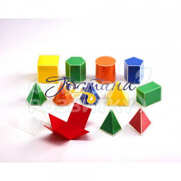 | Склад | Набір мість 10 геометричних тіл, виготовлених з міцного прозорого пластику, всередині яких розгортка фігури. |