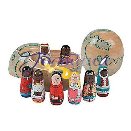 Набір включає в себе дерев'яну землю, що розкривається, і всередині розміщуються 8 фігурок народів світу