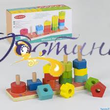 Дерев'яна пірамідка-сортер Геометрія С 36017 познайомить вашого малюка з такими поняттями як форма і колір, навчить розподіляти предмети за певними ознаками, допоможе в розвитку координації і логічного мислення.У наборі логічної гри: дерев'яна підставки зі стовпчиками та різнокольорові геометричні фігури.Принцип гри в тому, щоб сортувати предмети за формою і кількістю, правильно розміщуючи їх на основу.