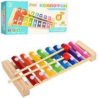 Металофон-каталочка складається з підставки і 8 кольорових пластинок-клавіш, пофарбованих у кольори веселки і налаштованих на різні ноти.Для того, щоб звучання кожної металевої пластинки було індивідуальним і неповторним, всі вони мають різну довжину і особливим чином закріплюються на дерев'яному каркасі. Реалістичність звучання кожної нотки октави дозволить вам і вашій дитині зіграти на металофоні прості дитячі пісеньки.Цікавий і забавний інструмент допоможе дитині зануритися в світ музики, розвинути хороший музичний слух, координацію рухів і навіть вивчити кольори веселки.Розмір 28 х 13 х 6 смЩо розвивається координація рухів, творчі здібностіЩо в комплекті металофон, дві дерев'яні паличкиВиробництво Китай