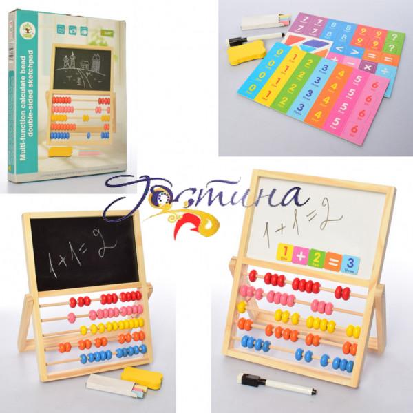 Двосторонній дерев'яний мольберт має дві поверхні: для малювання крейдою, магнітна - для магнітів і малювання маркерами на водній основі.