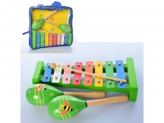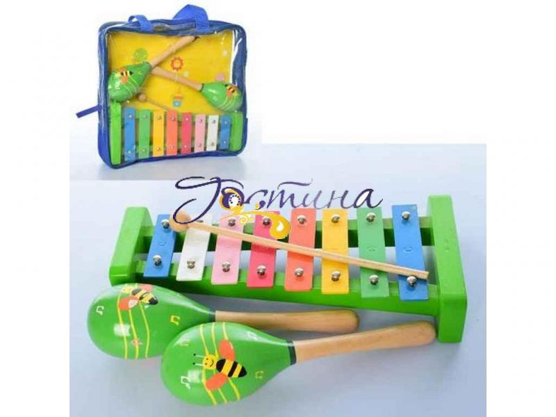 Дерев'яна іграшка Музичні інструменти MD 2127 ксилофон 27 см., маракаси, сумка, 28-28-6 см.