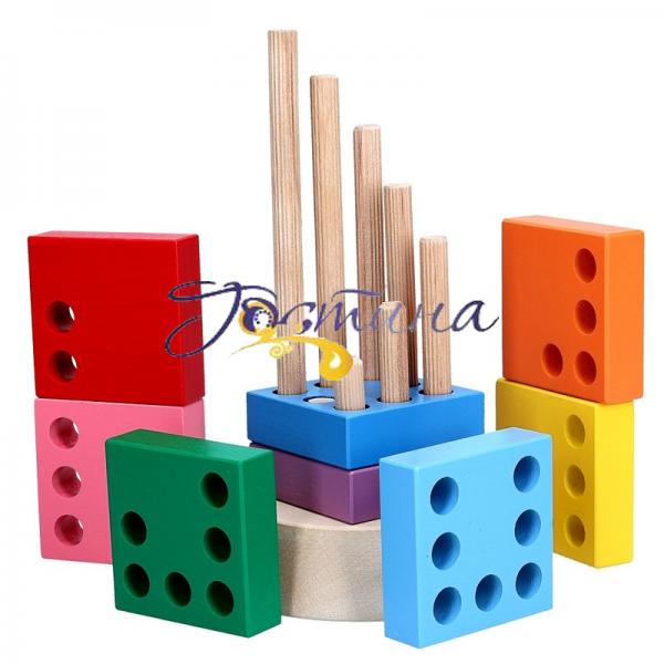 Розмір 15*9*9 см Матеріал: дерево Розвиток дрібної моторики рук, координація рухів, логіки, мислення, кольоросприйняття