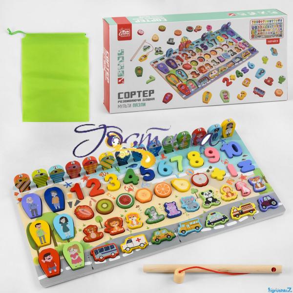 Розвивальна дошка - сортер "мульти пазли" 58148 від відомого виробника дитячих іграшок "4FUN Game wood Club" перетворить пізнання основ арифметики справжню веселу гру.