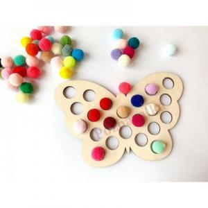 Розвиваюча настільна гра сортер від ТМ Познавалка «Метелик з великими помпонами" - захоплююче посібник для гри і розвитку дрібної моторики. За допомогою даної гри можна шнурувати метелика і наповнювати помпонами дірочки. Сортувати помпони можна вручну, а можна за допомогою пінцета (пінцет до набору не входить). Комплектація: - 1 плашка у вигляді метелика 15 см - 50 помпонів 1,5 см матеріал: - дерево (фанера) - помпони Вік: 12 міс