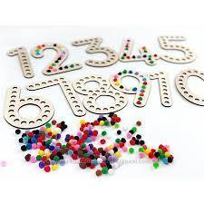 Розвиваюча настільна гра сортер від ТМ Познавалка «Цифри з помпонами" - захоплююче посібник для гри і розвитку дрібної моторики. За допомогою даної гри можна шнурувати і вчити цифри, обводити їх і наповнювати помпонами дірочки, а також, використовувати їх в якості трафаретів. Сортувати помпони можна вручну, а можна за допомогою пінцета (пінцет в набір не входить). Комплектація: - Цифри від 1 до 10 (14 * 10 см) - Помпони мікс 200 шт (1 см) матеріал: - дерево (фанера) - помпони Вік: 12 міс +
