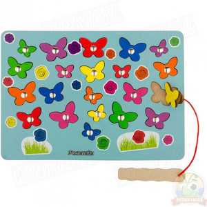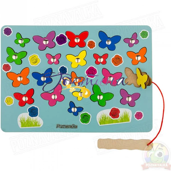 Розвиваюча настільна гра сортер від ТМ Познавалка «Злови метеликів" - захоплююче посібник для гри і розвитку дрібної моторики. За допомогою даної гри можна сортувати, вивчати кольори, поняття більше/менше, вивчати рахунок, тренуватися в спритності. Комплектація: - Плашка з галявинкою; - Наклейки квітів і трави; - Магнітна вудка; - 21 метелик в 3-х різних розмірах і 7 кольорах. Матеріал: дерево (фанера) Вік: 2 + Виробник: Познавалка
