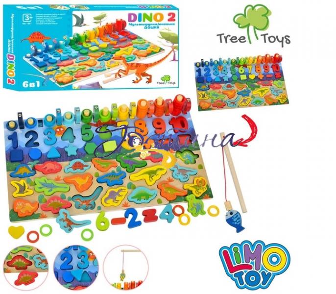 Дерев'яна іграшка Tree Toys Багатофункціональна дошка MD-1947. Ця логічна іграшка познайомить дитину з цифрами, тваринами та квітами. Крім того, дитині потрібно буде знайти для кожної фігурки місце.