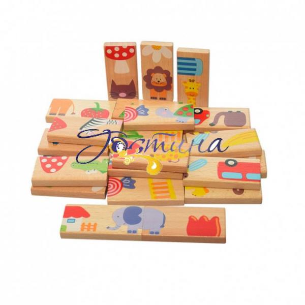 Дерев'яне Доміно 2072 – це безпечна, захоплююча та яскрава гра, що складається з 28 дерев'яних карток-брусочків. Представлено у 2 видах - доміно "класичне" та доміно-пазли Граючи з дитиною в такі доміношки, крім очевидного тренування та зорової та короткочасної пам'яті, Ваше чадо познайомиться з безліччю нових та цікавих понять. При тому запам'ятовування відбудеться у веселій та невимушеній обстановці, а що ще треба, нам, батькам, окрім як весела та допитлива дитина”.