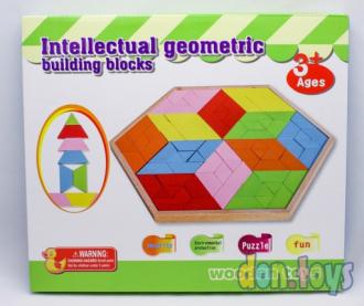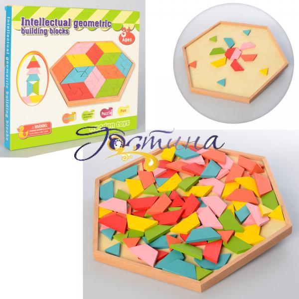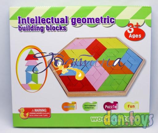 Підходить для дітей від 3-х років. Дерев'яна іграшка Геометрика. У коробці - фігури, ігрове поле,. Розмір - 33-28,5-2,5см, Матеріал - дерево, Тип упаковки - коробка.