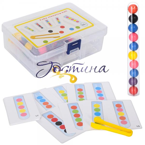 Дерев'яна іграшка Гра MD 1714 колба, кульки, пінцет, картки, в пласт.ящику. Матеріал: дерево.