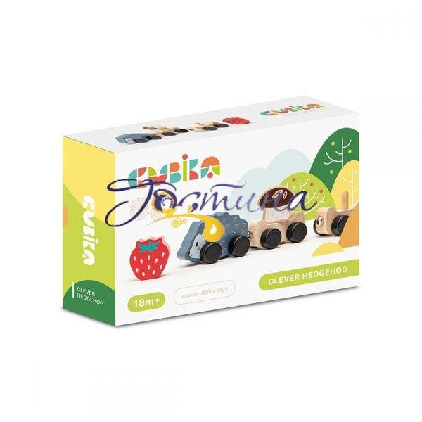 Дерев'яна іграшка Машинка Їжачок-мандрівник від виробника Cubika Дерев'яна розвиваюча іграшка "Їжачок-Мандрівник" на магнітах Левеня Cubika складається з машинки-їжачка та вагончиків з грибочком та полуницею, які кріпляться між собою на магнітах. Завдяки рухомим колесам машинка розвиває високу швидкість і має високу маневреність. Ідеально підходить для малюків, тому що деталі великі, але не важкі та зручні для ручки дитини. Розвиває дрібну моторику, логічне та об'ємне мислення, уяву. Розмір: 7x6x30 см.