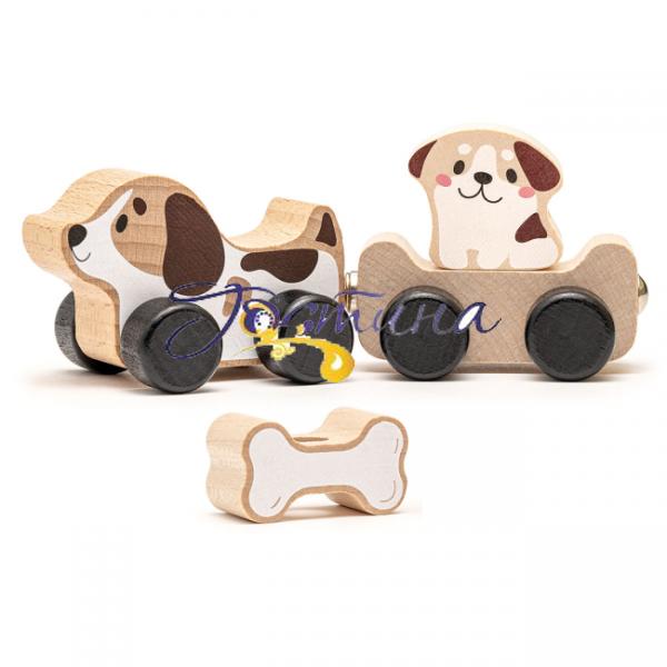 Дерев'яна іграшка Машинка Тямущі цуценята від виробника Cubika Дерев'яна розвиваюча іграшка "Розумні цуценята" на магнітах Левеня Cubika складається з машинки-цуценята і причепа з кісточкою, які кріпляться між собою на магнітах. Завдяки рухливим колесам машинка розвиває високу швидкість і має високу маневреність. Ідеально підходить для малюків, так як деталі великі, але не важкі і зручні ручки для дитини. Розвиває дрібну моторику, логічне і об'ємне мислення, уяву. Розмір: 7x6x30 див.