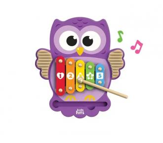 Цей ксилофон у формі сови - чудовий творчий інструмент для розвитку, що дозволяє дітям вивчати основи музичних концепцій під час гри. З п'ятьма клавішами у весняних кольорах, дзвіночком на крилах сови та самостійно зберігаємим дерев'яним молоточком, ця іграшка призначена для того, щоб діти отримували перші знання через практичну гру, вивчаючи форми, кольори та лічбу від 1 до 5. Граючи з цим першим музичним інструментом, малята розвиватимуть відчуття власних досягнень!