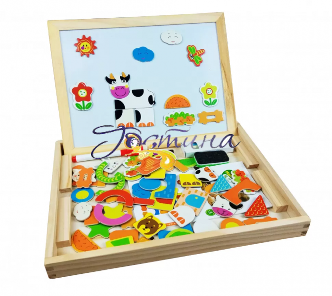 Дерев'яна іграшка Набір першокласника MD 2083A - універсальний подарунок для юного школяра, який прекрасно підійде як для дівчинки, так і для хлопчика. У комплекті передбачена спеціальна двостороння дошка 29 х 19 см. На одній стороні досточки дитина зможе малювати і писати крейдою, а на зворотному - вивчати різні фігурки, розвивати фантазію і посидючість. Дитячий набір виконаний з екологічно чистої деревини, приємною для тактильних відчуттів, яка є абсолютно безпечною для дитячого здоров'я. Поверхня досточки оброблена і ретельно відполірована, а також пофарбована за допомогою нетоксичних фарб на водній основі, які практично не мають запахів. Також в комплекті додається невеликий ящик, де зручно зберігати всі навчальні приналежності.