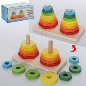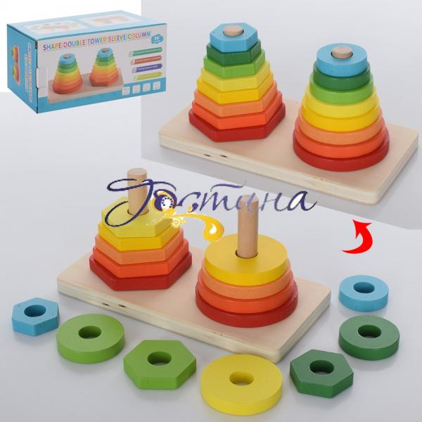Дерев’яна іграшка Пірамідка MD 1765 2шт, кільця 7шт, шестикутник 7шт, в коробці. Матеріал: дерево.