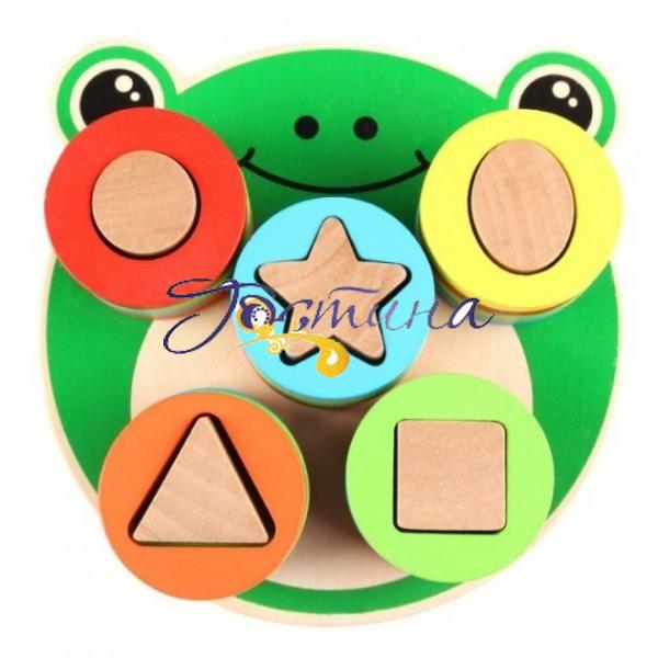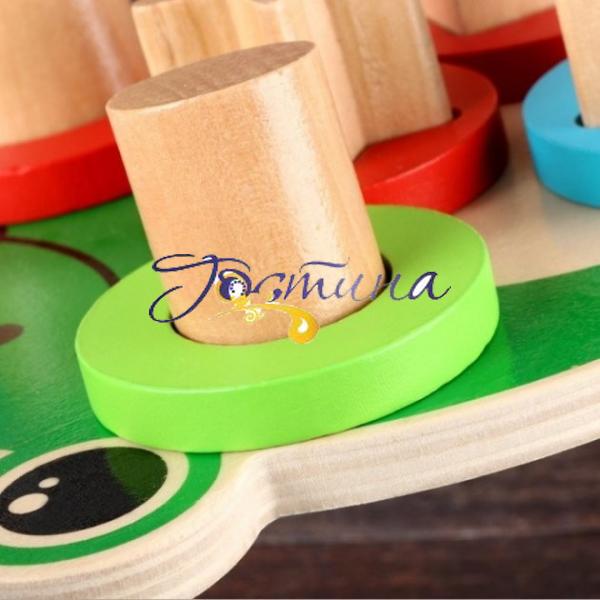 Найцікавіша дерев'яна гра головоломка-сортер Жабка, проста але дуже ефективна гра для розвитку: