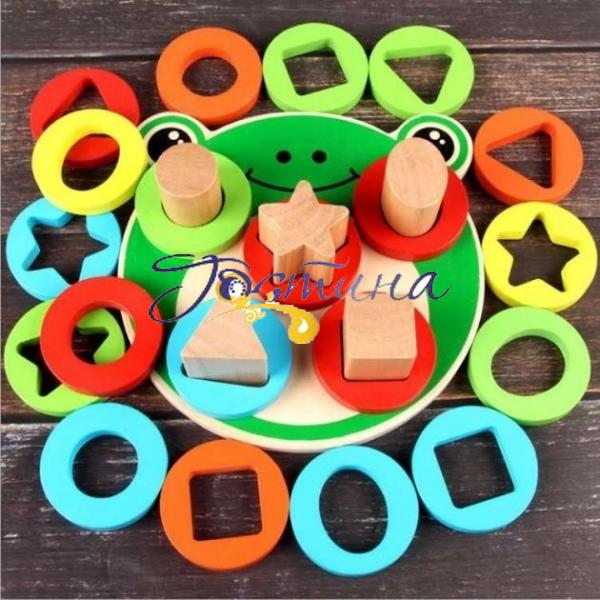 Дерев'яна головоломка-сортер Жабка є частиною педагогічної системи розвитку за методикою Монтессорі - провідної системи світу!
