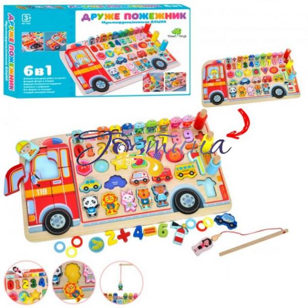 Дерев'яна іграшка Tree Toys Багатофункціональна дошка MD-1960. Ця логічна іграшка познайомить дитину з цифрами, тваринами та квітами. Крім того, дитині потрібно буде знайти для кожної фігурки місце.