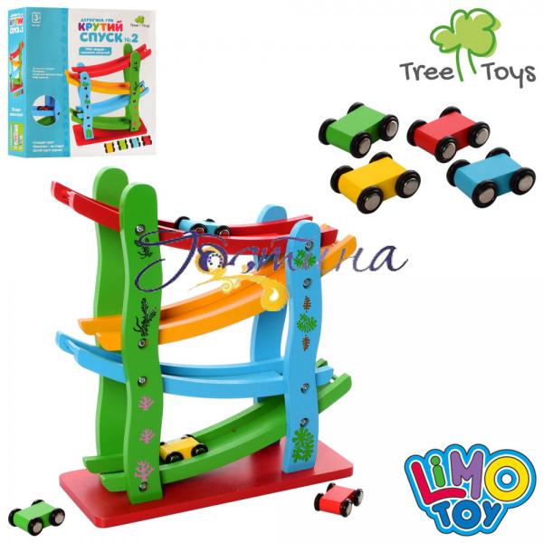 Дерев'яна іграшка Трек MD 2688 (30шт) в28см, машинка 4см 4шт, в кор-ке,26,5-28,5-10,5 см